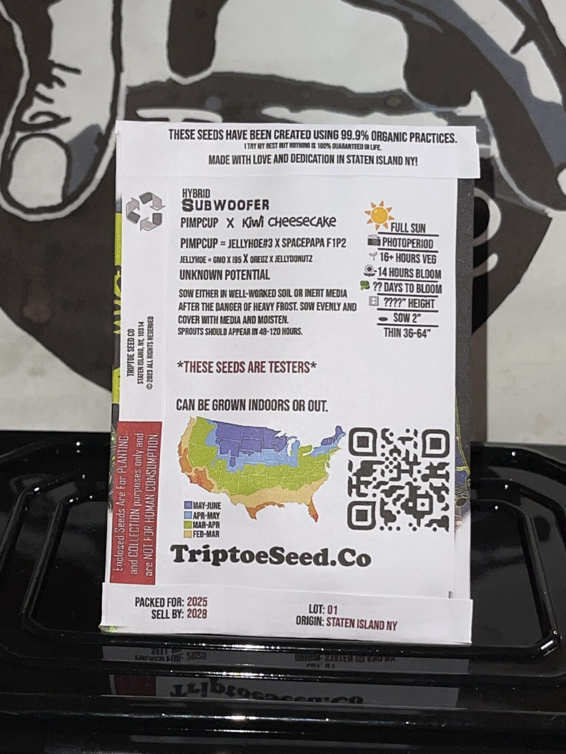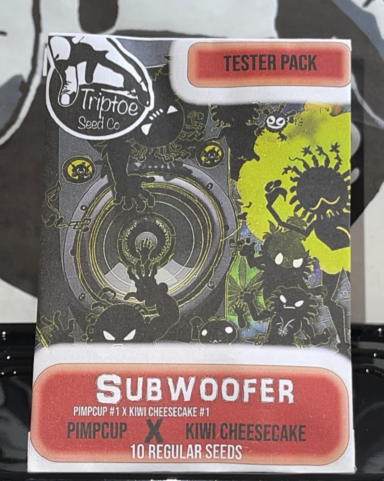Subwoofer brings together two terp heavy performing lines: the Pimpcup female, a blend of GMO, Pinappla Papaya, and JellyDonutz with killer funk, structure, and insane bag appeal, and a Kiwi Cheesecake male loaded with complex terps. Designed for growers who want something weird, loud, and full of surprises. Something that shakes your bones.